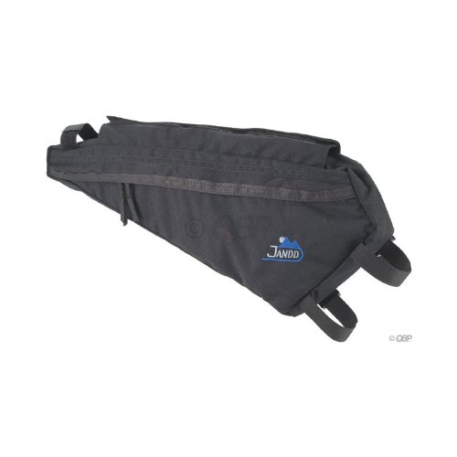 Jandd Frame Pack. Mounts to down tube and top tube in the triangle for storage of longer or larger items in an easy to reach spot. Features: 4-point hook and loop attachment
